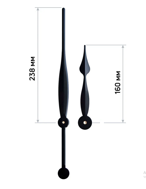 - Минутная стрелка, чёрная, длина от оси до кончика 238 мм, 1 шт.;